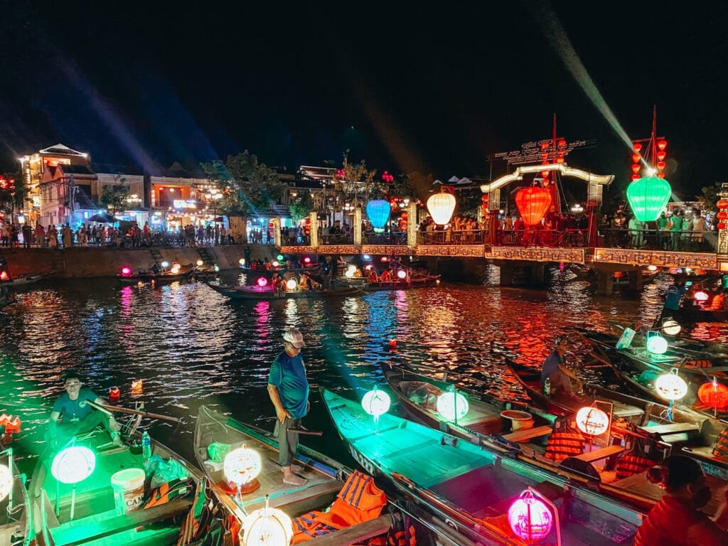 When all the lanterns light up at night, they also have boats go down the river with lanterns on them. While it’s a super touristy activity, it’s also very unique so I think it’s something you should do while there.