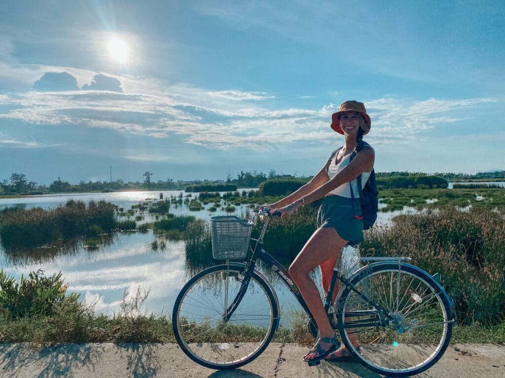 - Rent a bicycle. I rented a bicycle directly from my hostel and used that to ride from the Ancient Town to the beach and then around the Tra Que Vegetable farm. The ride was about 20 minutes and the roads were pretty easy to ride on as soon as you got a little out of the town.