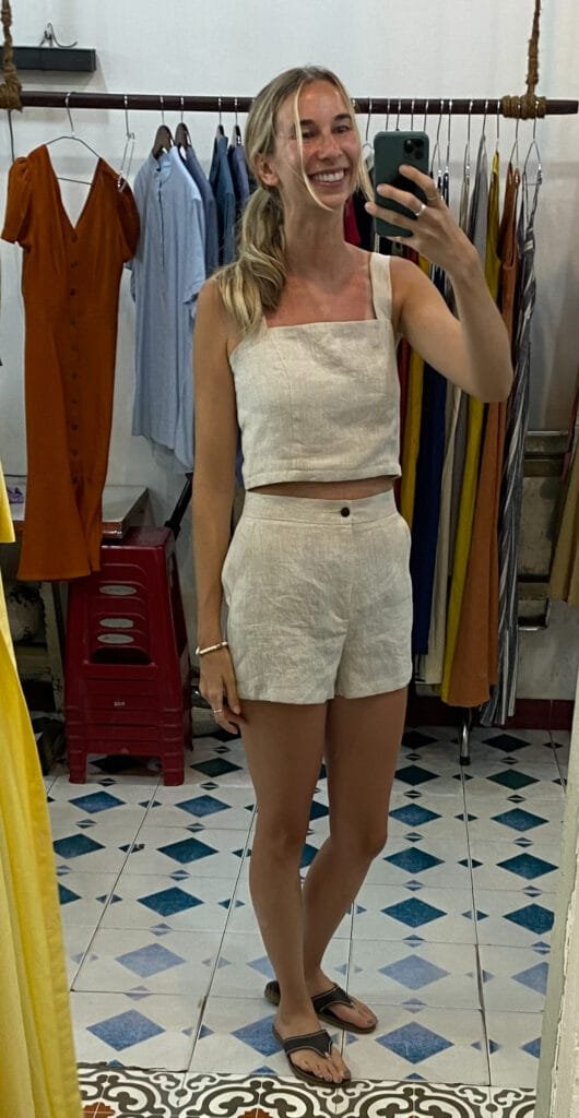 Recommendations on shops: Here are a few places that were recommended to me by the hostel I stayed at (including their Google Maps location): Blue Gecko Tailor and LiMe Store for linen. I got clothes made at Milan Linen and Clothes and had an amazing experience. The lady was incredibly kind and lovely, and the clothes turned out great! I definitely recommend Milan Linen if you are looking for some linen items.